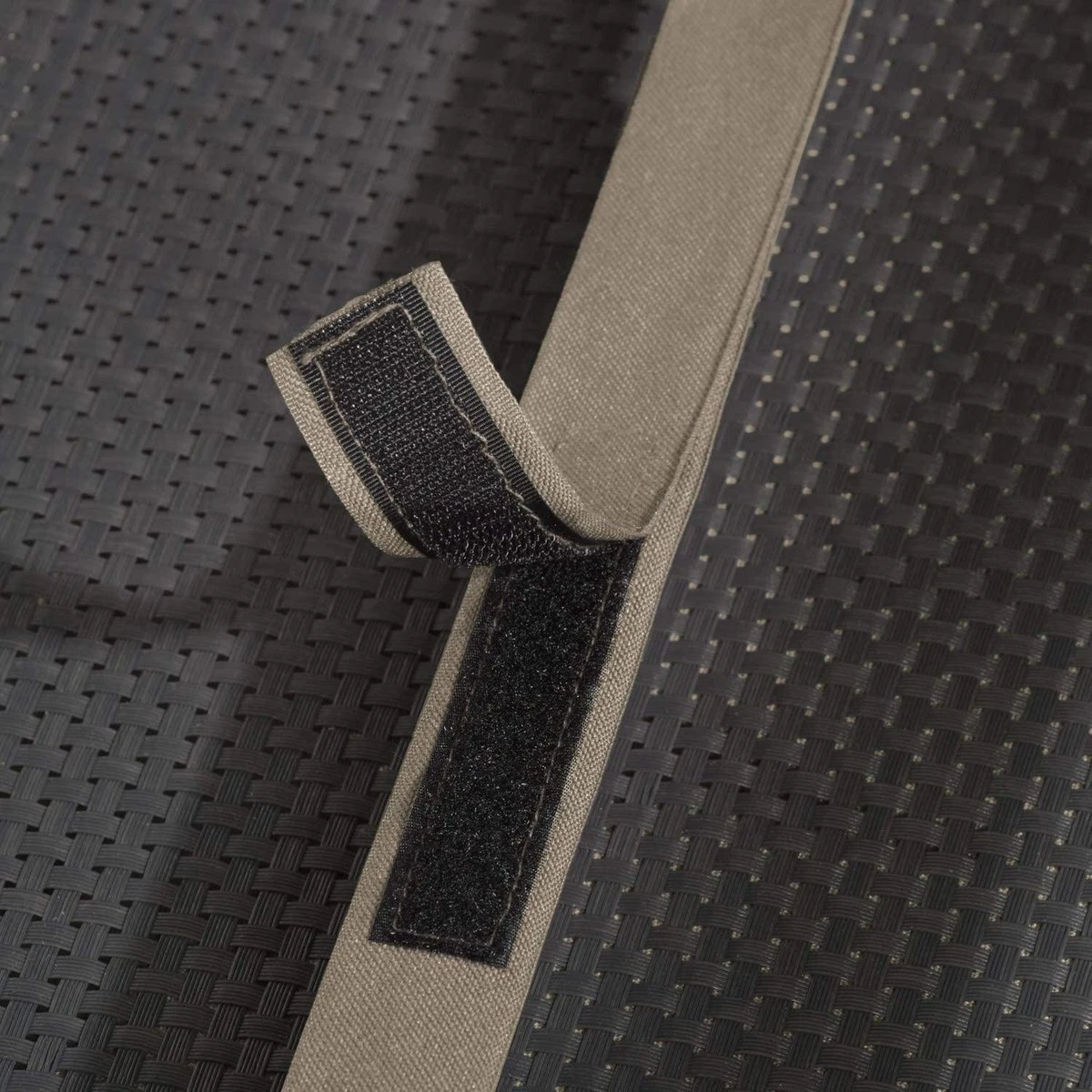 Op de achterkant van het kussen bevinden zich 2 bevestigingsbanden in de bijpassende kleur, waarmee het kussen zeer eenvoudig kan worden bevestigd.