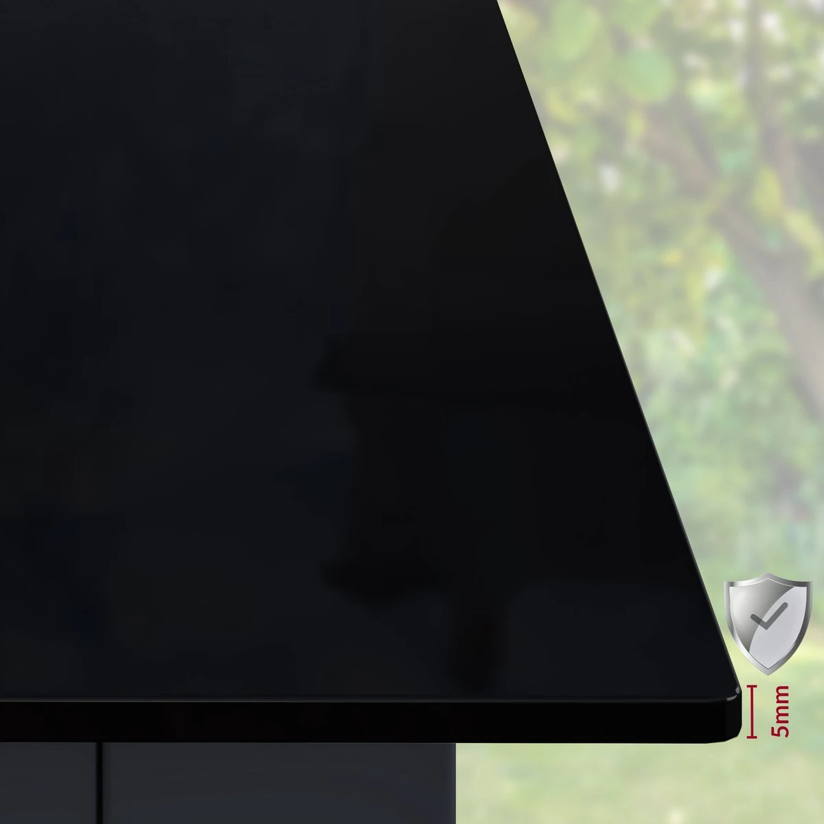 Het tafelblad is gemaakt van 5mm dik veiligheidsglas en is bijzonder stabiel.