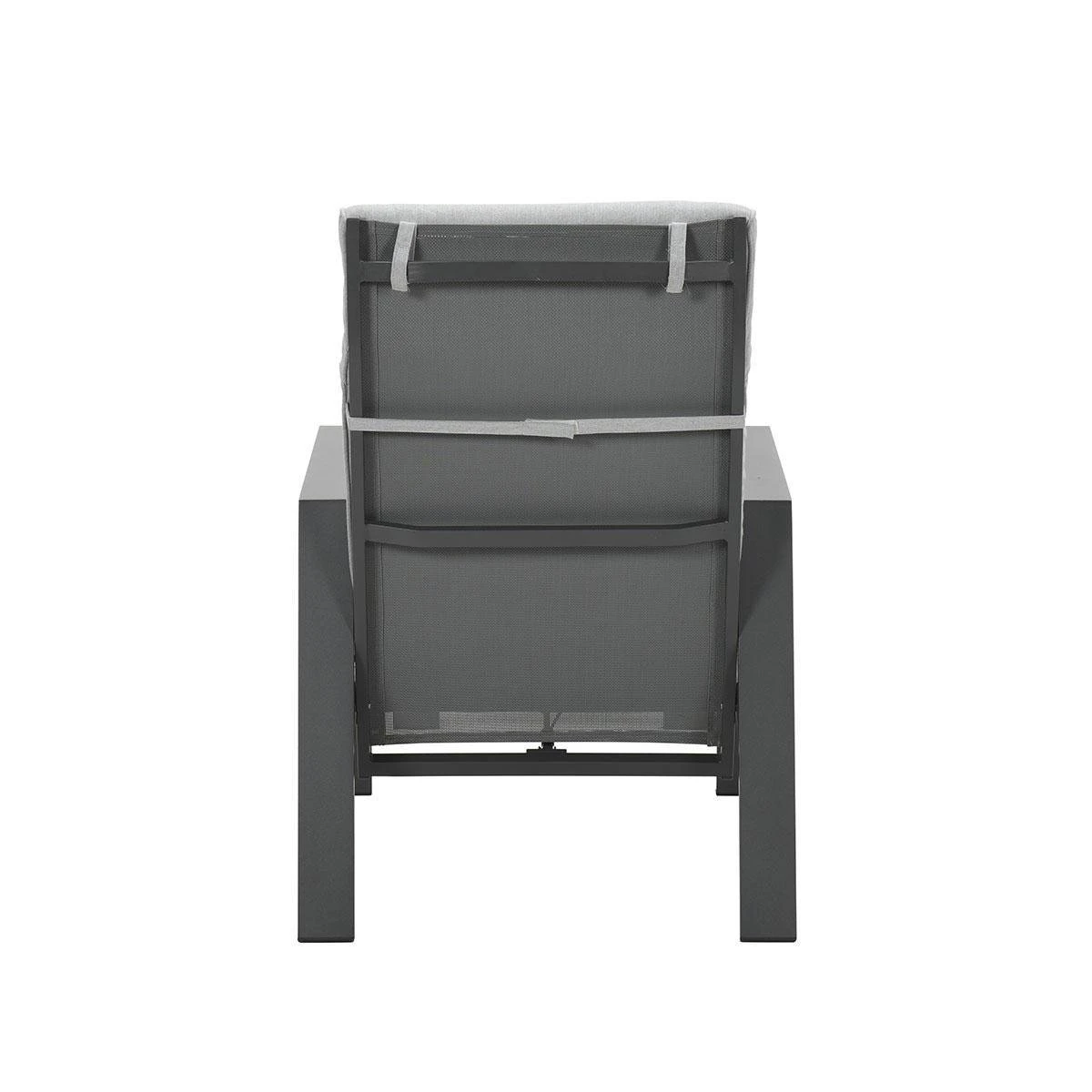 De Lora verstelbare tuinstoel is gemaakt van een stevig en onderhoudsvrij aluminium frame. Dit aluminium frame is voorzien van een sterke donker grijze poeder coating laag. Deze beschermlaag zorgt er voor dat de stoel kras- en stootvast is. Voor de zitting en de rugleuning van deze stoel is gebruik gemaakt van een textilene all-weather doek. Dit doek zorgt voor een fijn zitcomfort, doordat het een beetje meeviert. De Lora tuinstoel met voetenbank worden geleverd met comfortabele licht grijze kussens.
