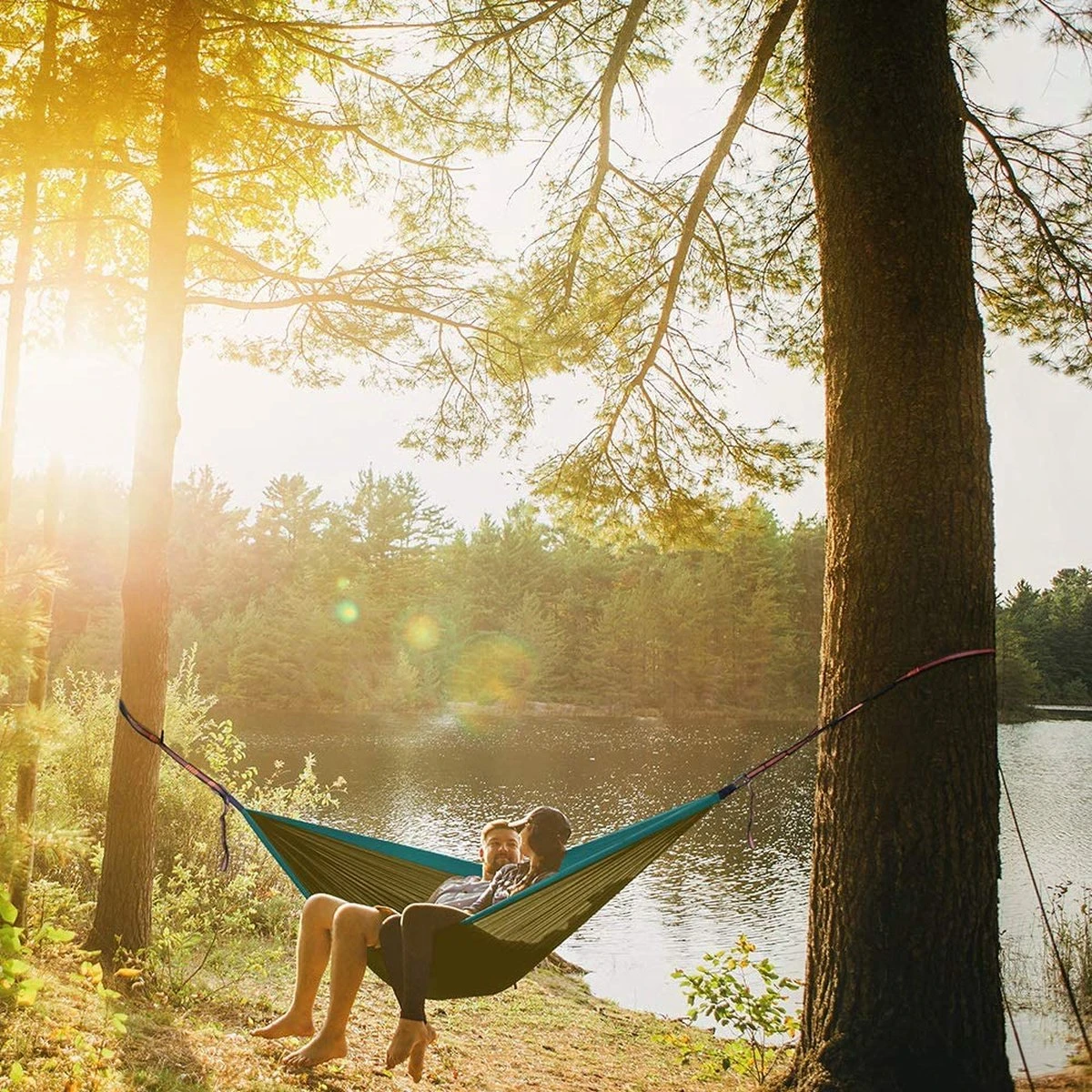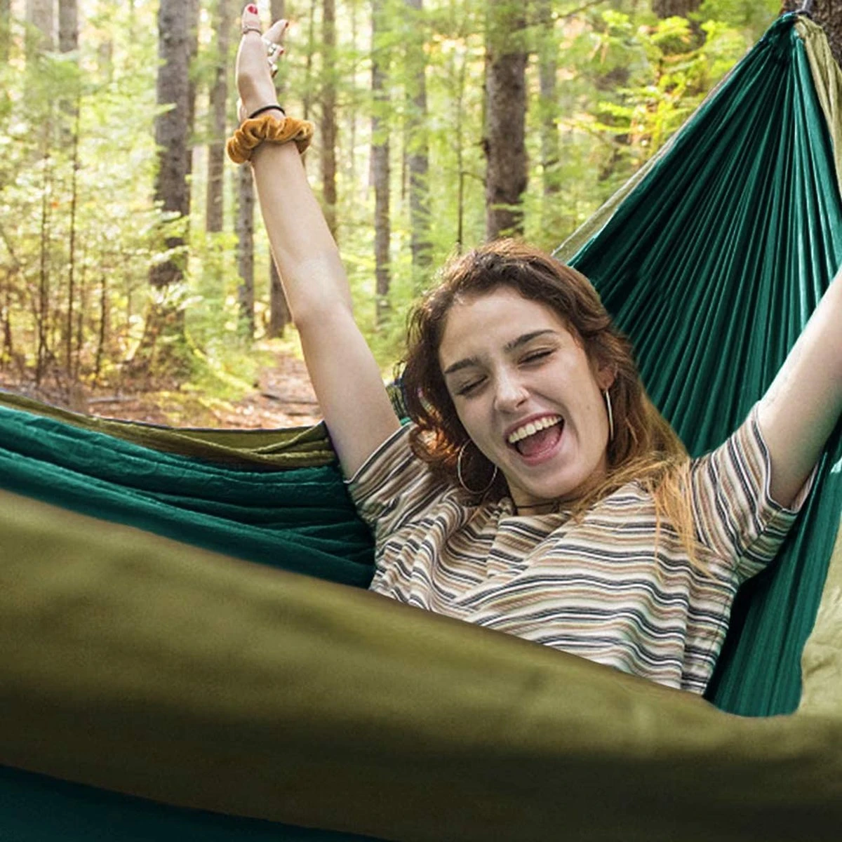 Kanyon Hangmat – Incl. Karabijnhaken En Riemen – Licht Parachutestof – 260 X 140 Cm – Tot 200kg – Groen/Khaki