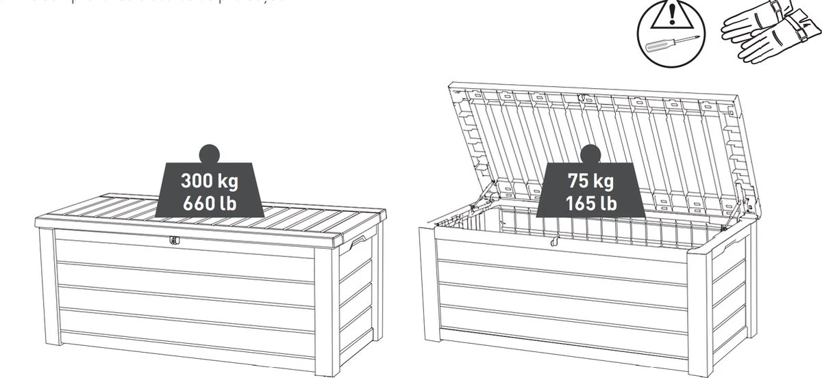 - Geschikt voor twee volwassenen om op te zitten (draagkracht deksel 350 kg)