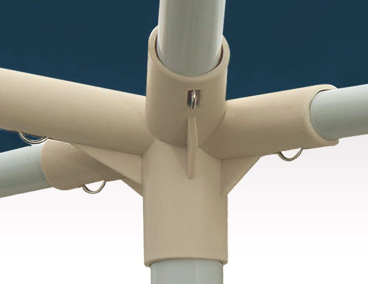 Dit is een budget tent. Deze is bedoeld om enkele malen te gebruiken op mooie zonnige dagen en zeker niet om dagen na elkaar op te staan. Deze tent is niet geschikt als vaste constructie. Hiervoor is het metaal te dun. Indien er wind en regen is voorspeld probeer dan de tent te verstevigen of niet te gebruiken. Anders zal wind/regen schade aan het product veroorzaken.