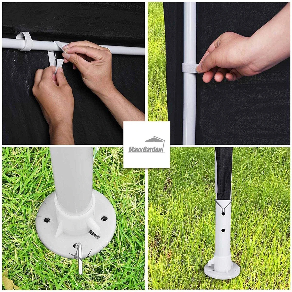 Hiervoor is het metaal te dun. Indien er wind en regen is voorspeld probeer dan de tent te verstevigen of niet te gebruiken. Anders zal wind/regen schade aan het product veroorzaken.