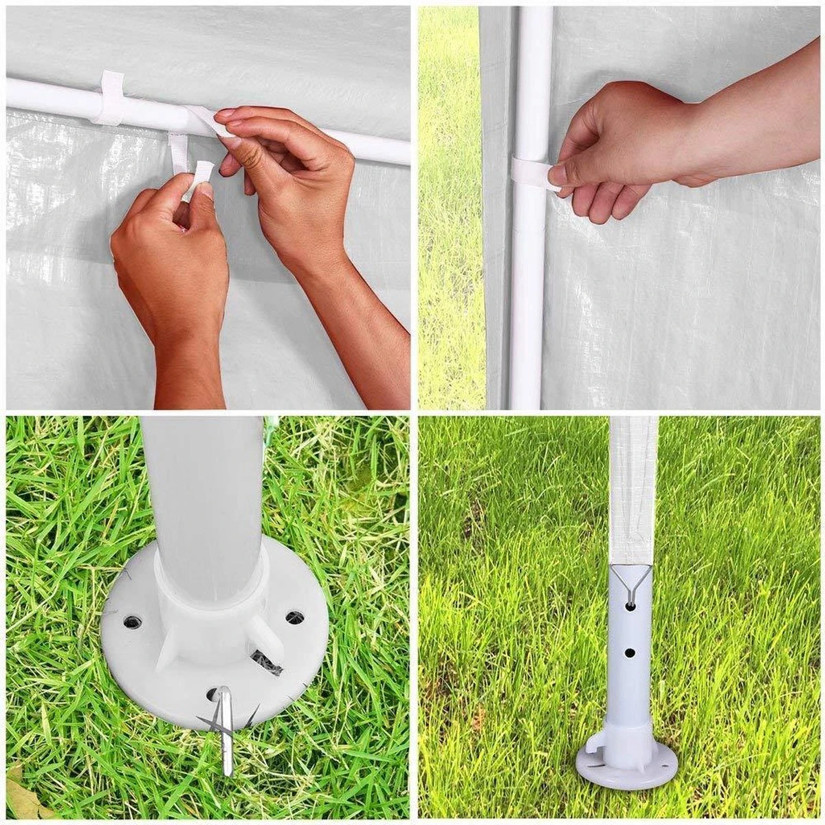 Door het spanzeil en de haringen staat het gestel van het tuinpaviljoen stabiel en is het binnen enkele minuten volledig opgebouwd.
