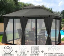 LifeGoods Partytent – 3×3 M – Easy Up – Opvouwbaar – Waterdicht – Draagtas Met Wieltjes – Beige